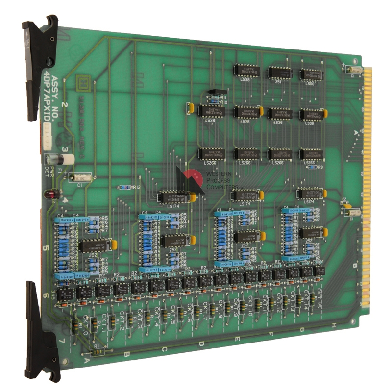 Honeywell 4DP7APXID111 Digital Input card detects and reports input changes on non-status-only points. Time tag and queue sequence-of-events changes, with one millisecond resolution between points in same PIU. For each status-only point, accept a target state and time-to-target code, and Report Command disagree changes based on reaching the target value within a specified time period (0 to 1023 seconds).