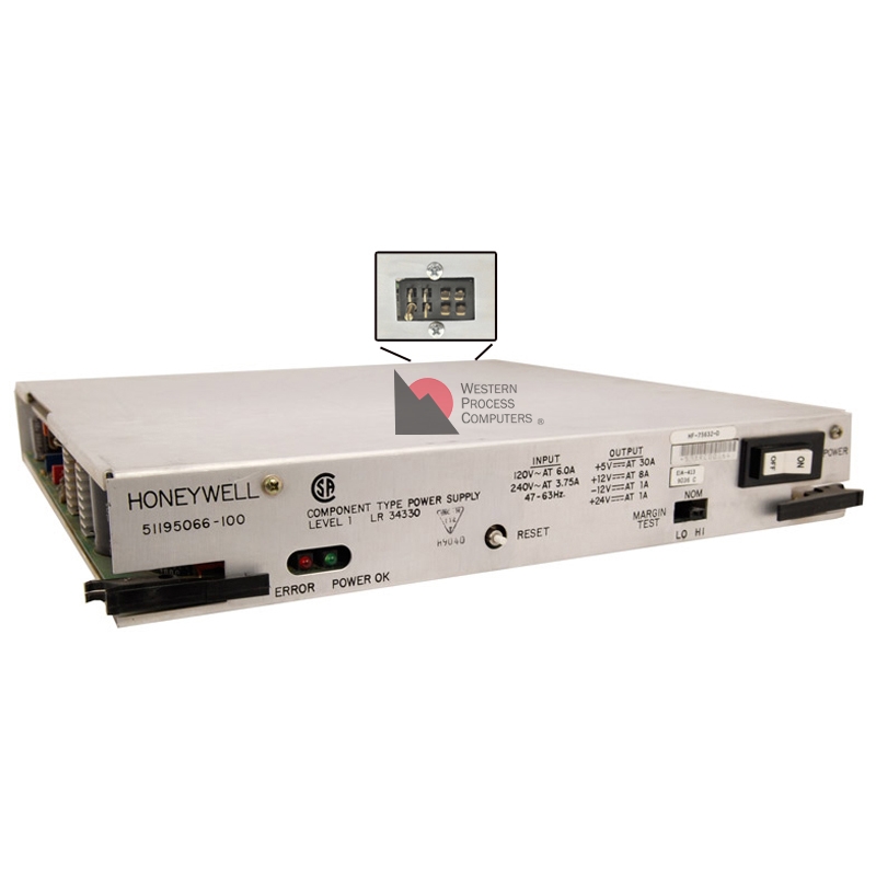 The 51195066-100 is the newer power supply for Honeywell's 5-slot chassis (non-CE) using the original 8-pin connector (as shown), and comes from WPC with NEW electrolytic capacitors. This power supply can replace the original 51400712-100