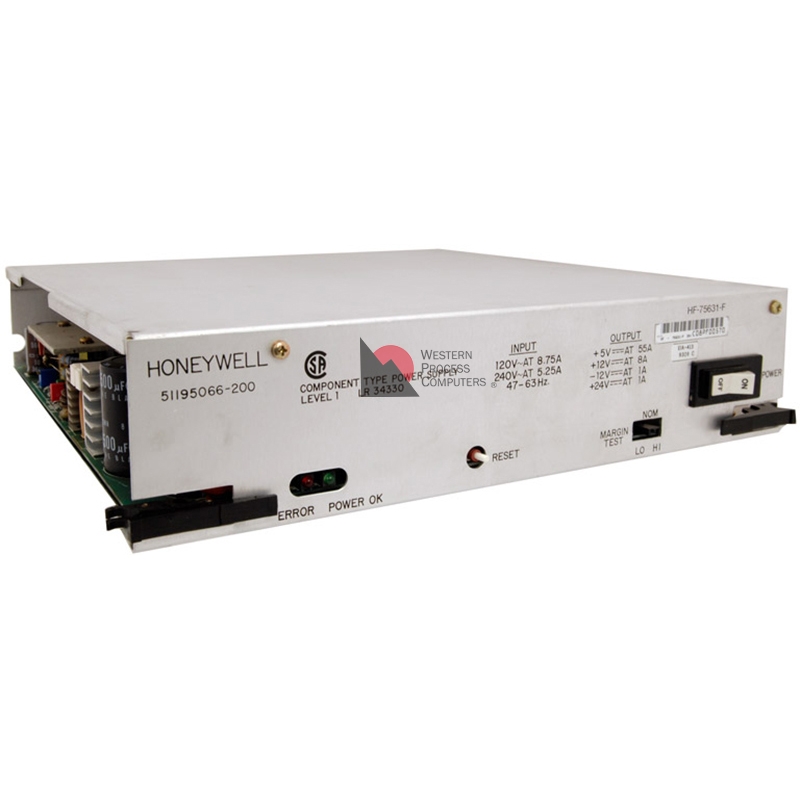 The 51195066-200 is the newer power supply for Honeywell's 10-slot chassis (non-CE) using the original 8-pin connector, and comes from WPC with NEW electrolytic capacitors. This power supply can replace the original 51400712-200