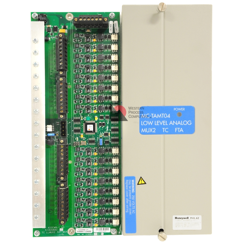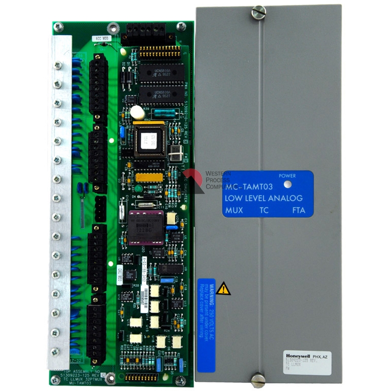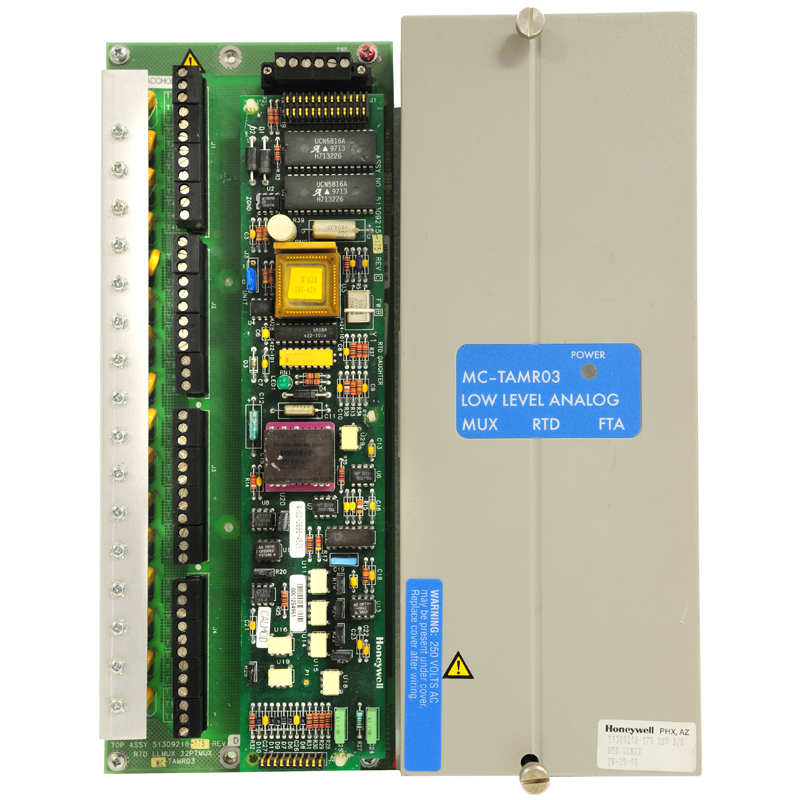 Honeywell LLMUX IOP - Low Level MUX Processor MU-PLAM02 (51304362-100). This IOP is not conformal coated. A Low Level Analog Input Multiplexer (LLMux) IOP processes up to 32 inputs from two 16 input FTAs.