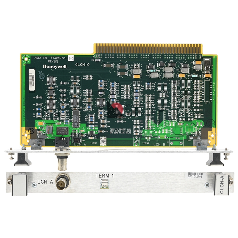 This is the paddle board in a dual-node chassis to connect the LCN interface with the LCN 'A' cable. The 'B' cable is attached to the CLCN-B paddle board in the same chassis.