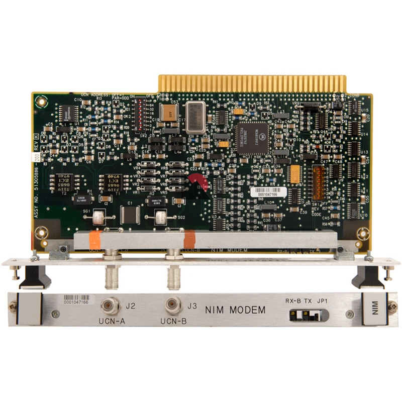 The 51305896-200 Modem is the paddle card in the CE NIM with connections for the UCN network cables, A & B. This single paddle board replaces the functions of the PNM, the PNM I/O, the PNI I/O, and the mini-coax in the older configurations of the NIM. The MODEM can be used for a carrier band PIN (Plant Information Network) in the Network Gateway.