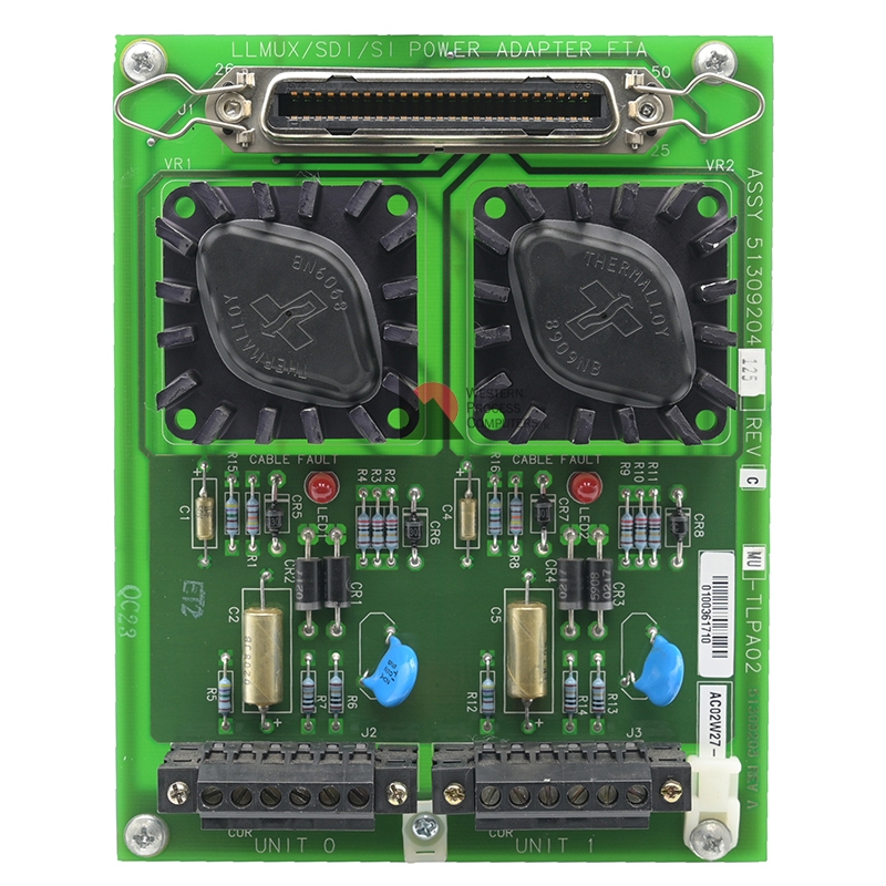 The LLMux, SI, SDI Power Adapter FTA - 51309204-125 (MU-TLPA02) mounts in the FTA tray in the xPM cabinet, and provides the interface between the IOP and the two remote FTAs. One or two Serial Device Interface FTAs can communicate with a single Serial Device Interface IOP through the 51309204-125 (model MU-TLPA02) Power Adapter. This power adapter is Non-Conformal Coated.