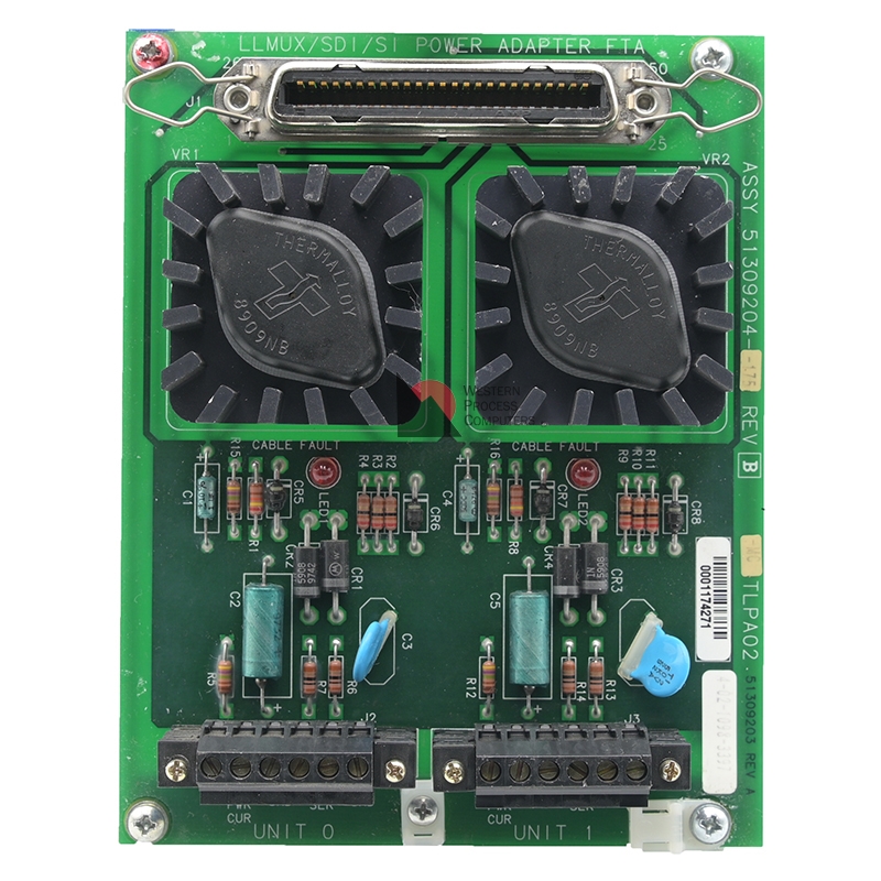 The 51309204-175 (model MC-TLPA02) Power Adapter mounts in the FTA tray within the xPM cabinet and serves as the interface between the IOP and up to two remote Serial Device Interface (SDI) FTAs. A single SDI IOP can communicate with one or two SDI FTAs through this adapter. The unit is Conformal Coated and CE compliant.