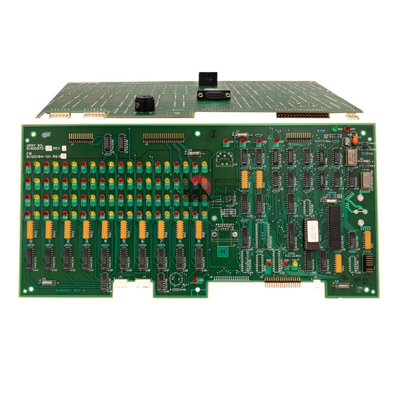 This is original low power version of the keyboard interface used in Honeywell's classic Universal Station. It does not support 'QWERTY' membranes. This interface was replaced by the more-common 51401570-100, which supports both 'ABCDE' and 'QWERTY' membranes.