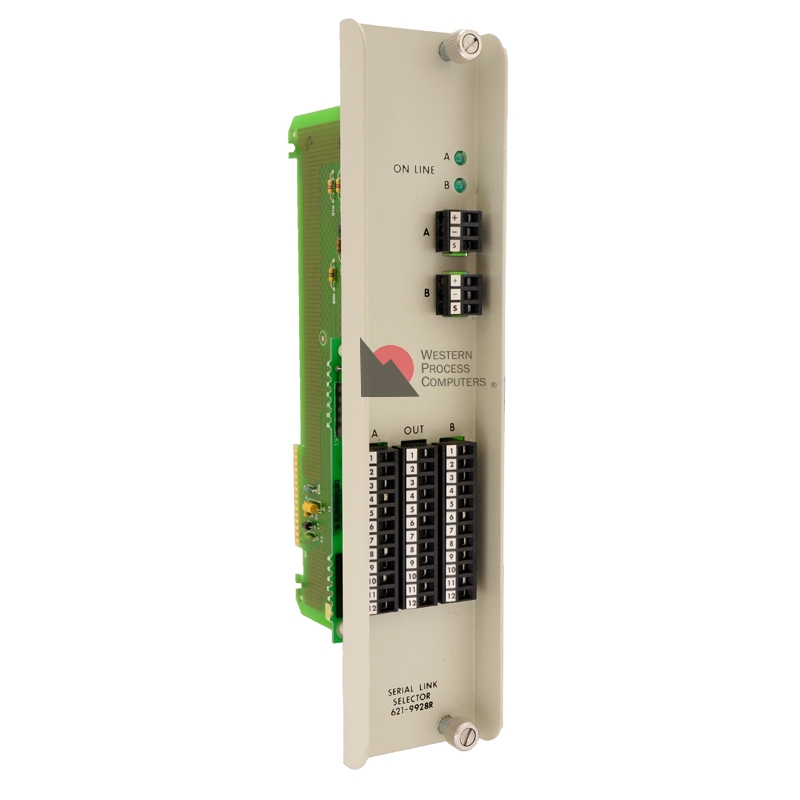 The Serial Link Selector Module (SLS), model 621-9928, is a double wide module installed in slots B and C of one I/O card file per Serial I/O System in a redundant configuration. The SLS serves as a general purpose switching device and switches serial communication devices shared by the redundant Logic Managers processors.