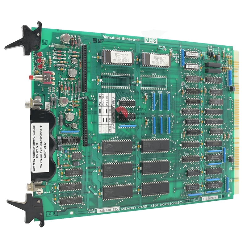 The 82408667-001 is the current PROM/RAM board for the Multifunction Controller. This card combines the PROM of the earlier 82408443-004 and the 24K RAM of the 82408443-003 onto a single card.